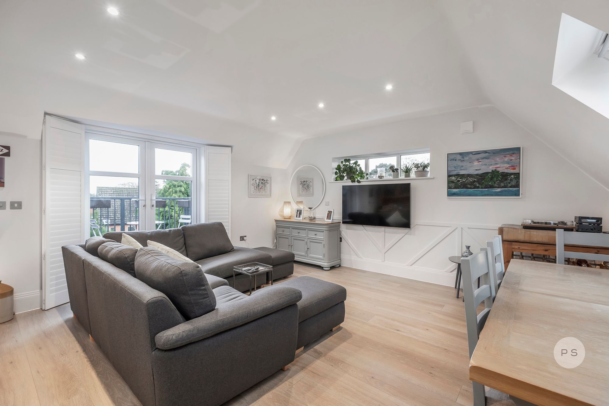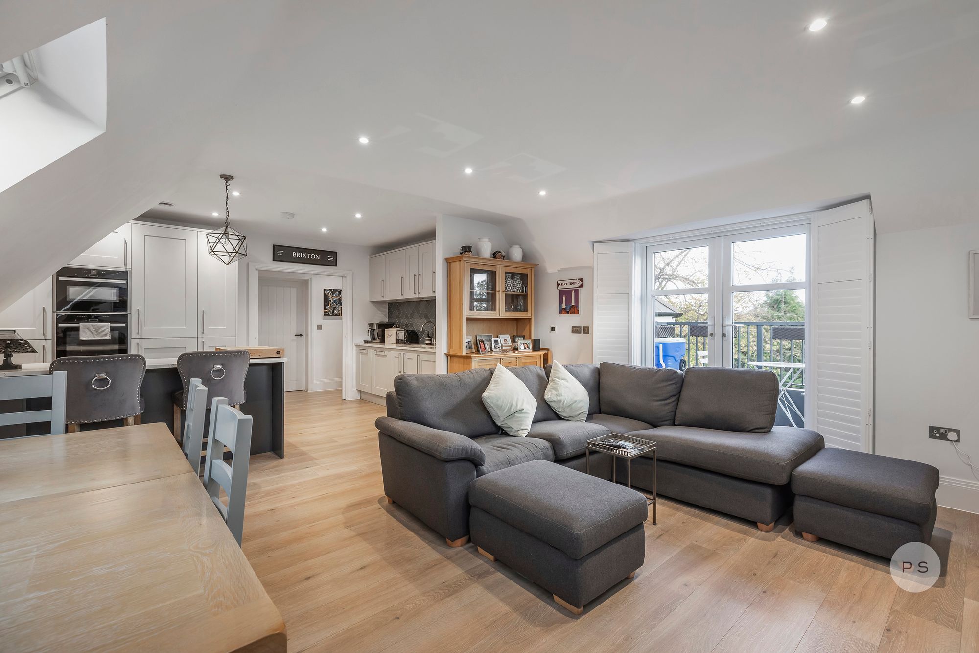 Situated on the top floor of an exclusive development of just twelve luxury residences, this superb three double bedroom apartment combines elegant and contemporary design with a standout outdoor living area. Immediately on entering the development, you are greeted by a stunning atrium style entrance hall, which sets the tone of what’s to come. Immaculately presented, the spacious interior of this london style apartment features an open plan living, kitchen and dining area finished to a high specification, including bespoke cabinetry, quartz worktops, and premium integrated appliances. The principal bedroom offers a luxurious en-suite and dressing area, bedroom 2 also has a luxurious en-suite and bedroom 3 by a beautifully appointed family bathroom.