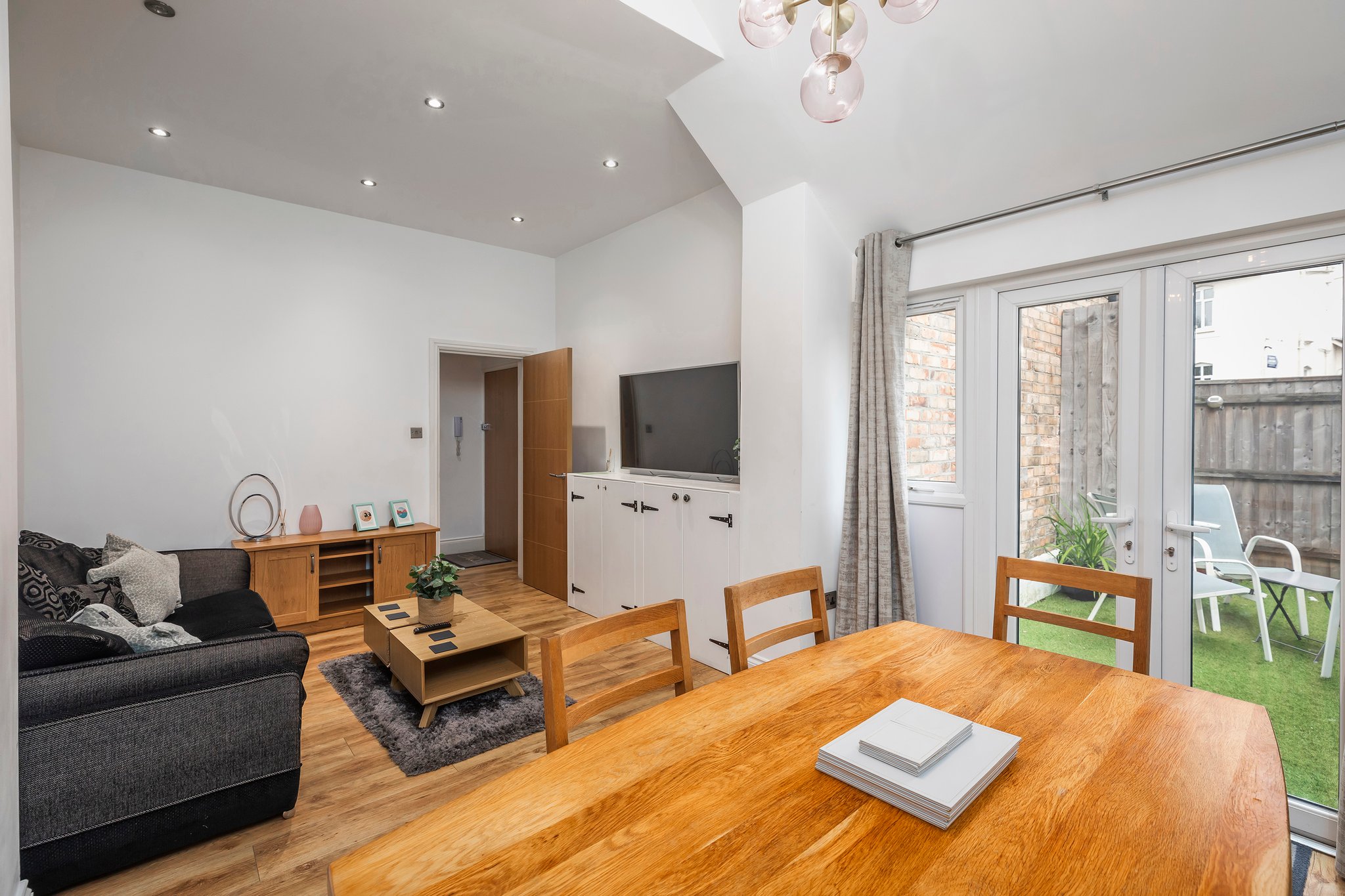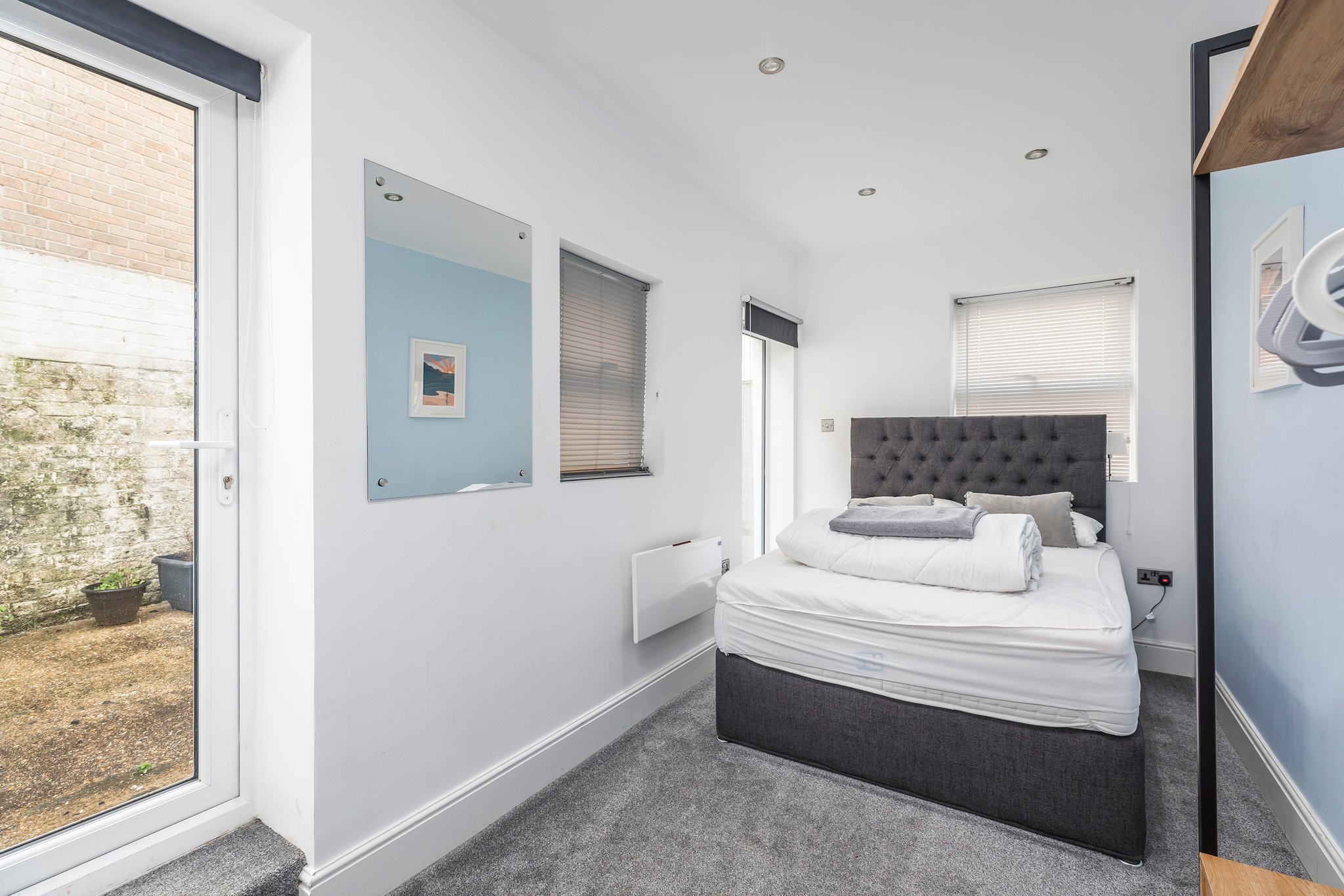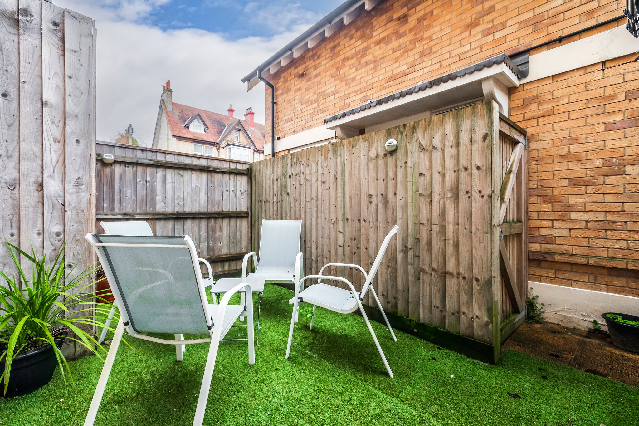 This charming two double bedroom holiday home is currently used as an Air B&B and can be acquired with the existing bookings for the summer. The large living & dining room has direct access onto a private patio with faux grass and table and chairs for alfresco dining. The modern kitchen extends into the hallway housing the integrated fridge, washing machine and dishwasher. The main bedroom with ensuite shower leads on to a second spacious private patio area. The second double bedroom has a fitted wardrobe and use of the family bathroom opposite. To the front of the property is an allocated parking space. Offered with no forward chain, contents available to purchase by separate negotiation. A fab little 2 bedroom, 2 bathroom apartment with two private outdoor areas, minutes walk from Bournemouth Beach.