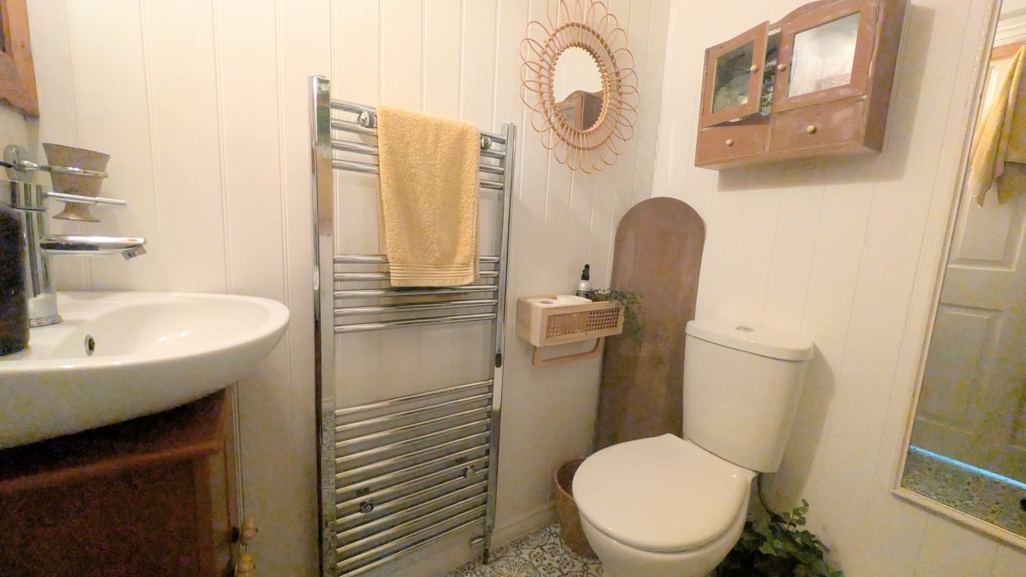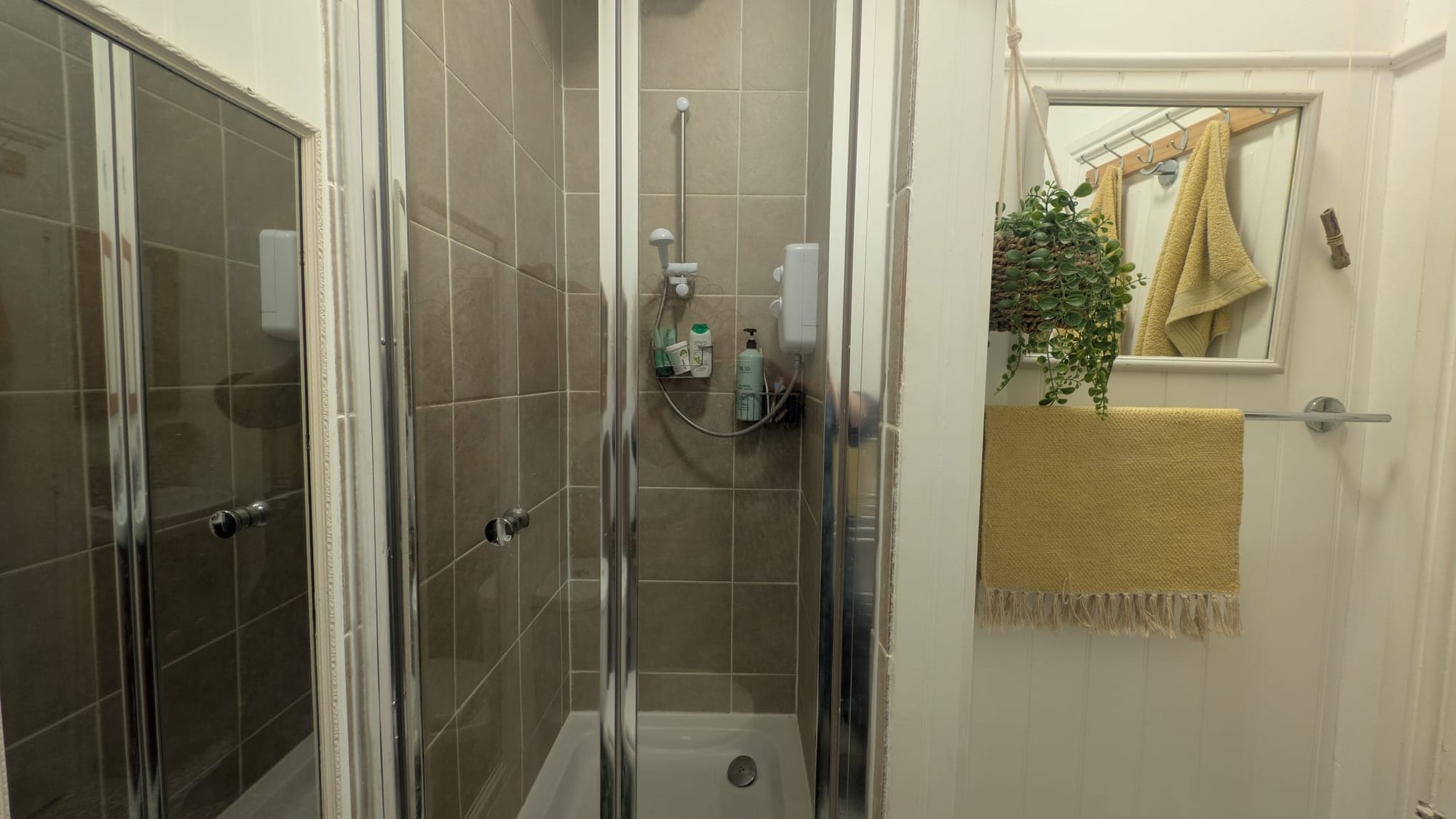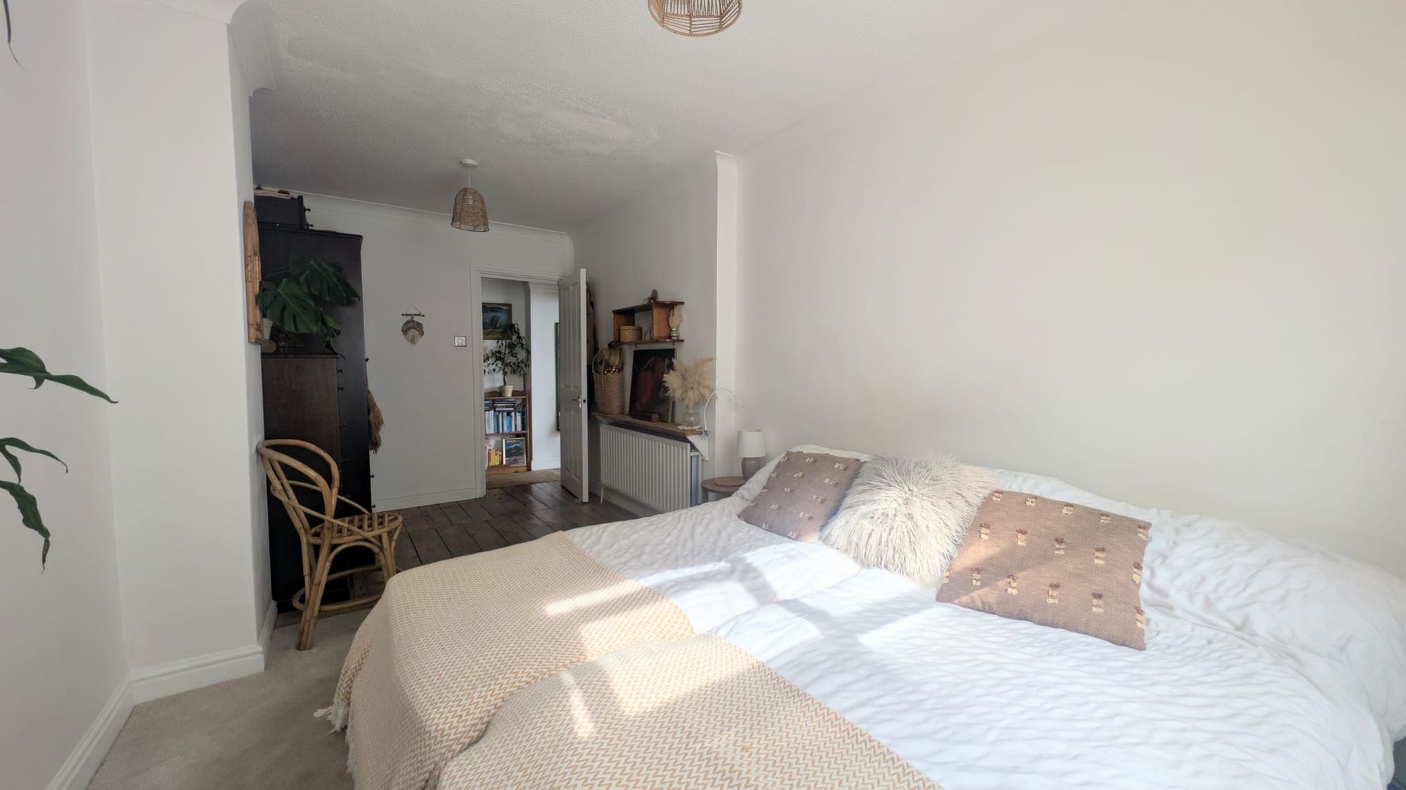 The principal bedroom is well-sized, continuing the period detailing and sense of volume found throughout. The second bedroom is notably versatile, benefiting from its own ensuite shower room, lending itself equally to guest accommodation, independent living or a defined work-from-home space. A separate main shower room is finished with half panelled walls and a fully tiled walk-in shower, designed with clarity and function in mind.